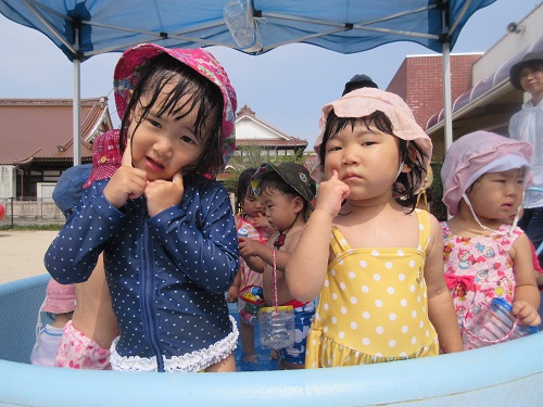 5月に植えた夏野菜の苗が立派に成長し、夏野菜が大収穫です。もも組(年少)さんが収穫に行きました。