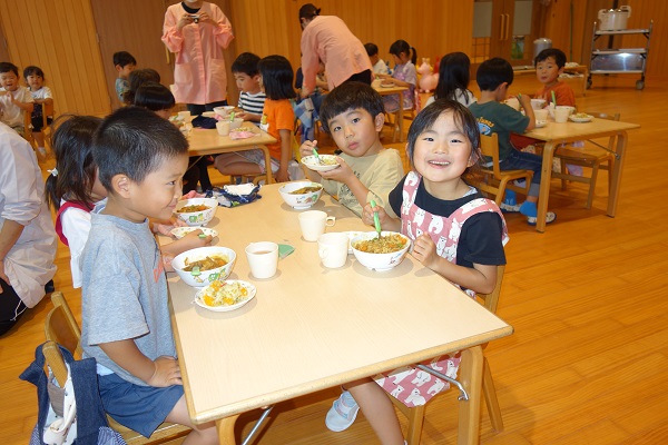 今日はカレーパーティー!!しろ組(年長)さん達がクッキングをしました。