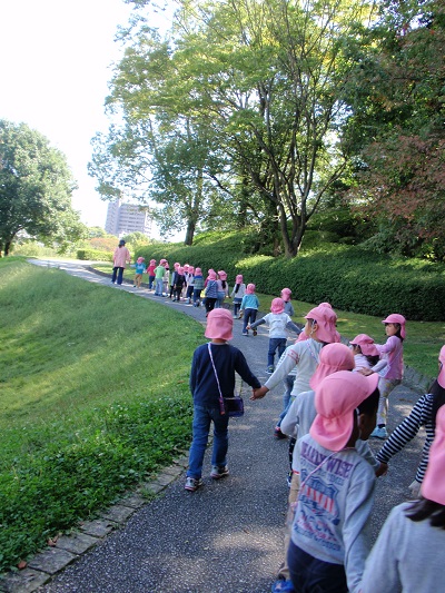 10月2日(金)もも組ふじ組しろ組さんは三ツ城古墳公園に遠足に行きました。 当日の朝方まで、降っていた雨が上がり、素晴らしい遠足日和になりました。
