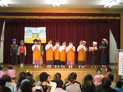 11月14日(土)発表会が行われました。 衣裳を着て、嬉しそうにステージにたつ子ども達でした。 年長さんは落語「寿限無」のお話を演じました。