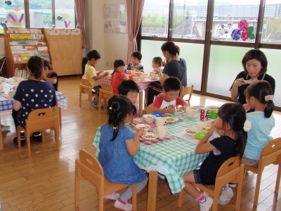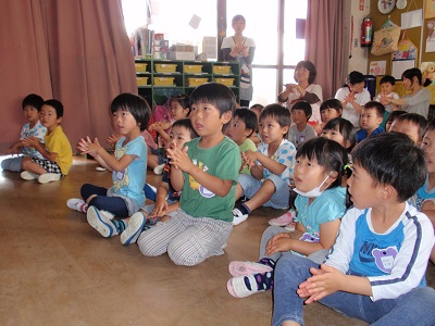 もも組、ふじ組、しろ組さん各クラスから5~6人のお友だちと