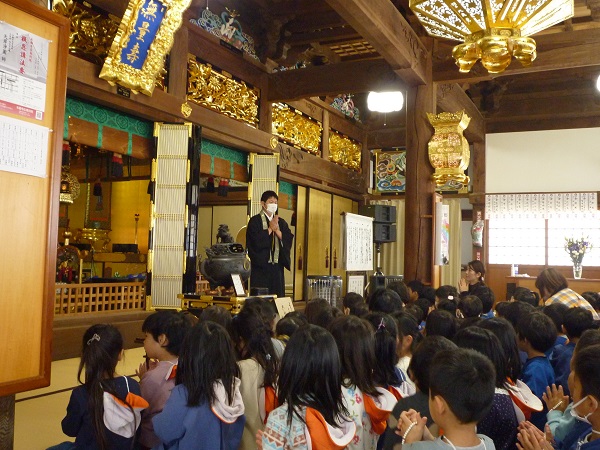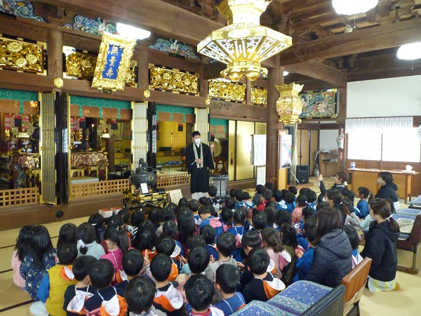 阿弥陀如来という仏様はいつでも、どこでも私たちを見守ってくださる仏様という話を子どもたちの前でしました。