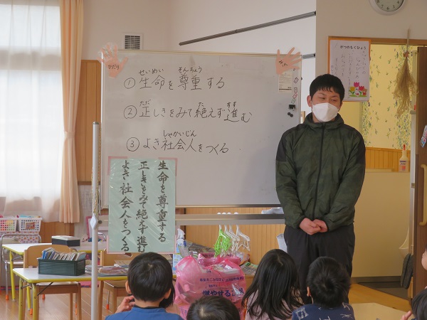 付け加えに友達と仲良くし、先生の話をしっかりと聞いて元気に園生活を送ってくださいと。
