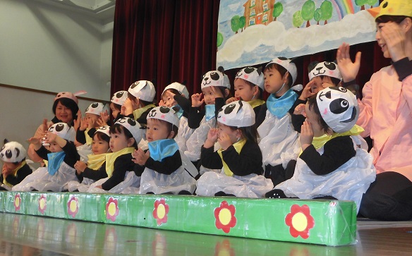 11月10日 発表会が行われました。 赤組さんは全員パンダになりました。