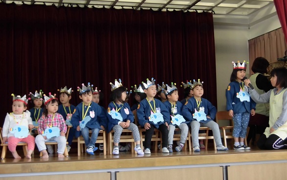 4月13日 4月生まれのお友だちのお誕生日会をしました♡ お誕生日のお友だちはステージに座ります。