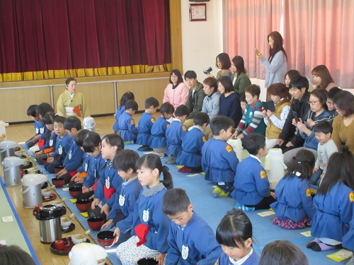 お家の方に自分で点てたお茶を飲んでいただき、お互いに笑顔が溢れていました。