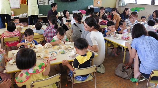 日頃の子どもたちの給食の様子を観ていただき、保護者の方にも試食をしていただきました。