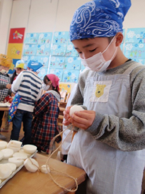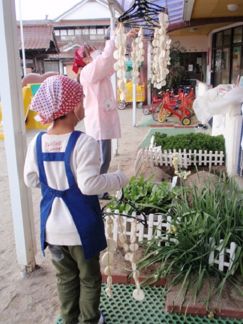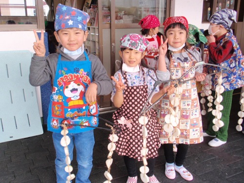 しろ組(年長)さんが干し大根を作りました。