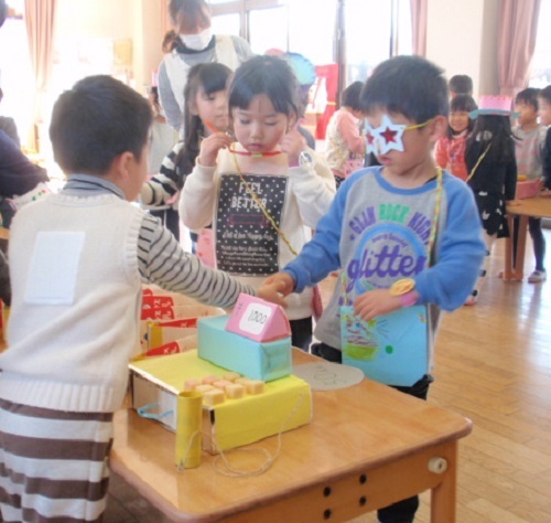 幼児クラスはファッション雑貨屋さん、ベルトやおしゃれメガネ、