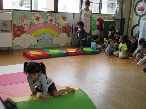 き組(2歳児) 室内サーキットで身体を動かしました。