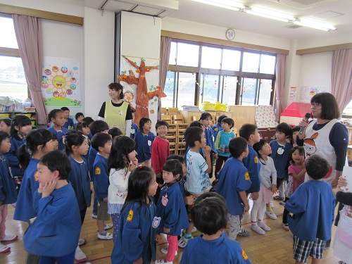 幼児組(3・4・5歳児) ○×ゲームや猛獣狩りゲームを楽しみました。