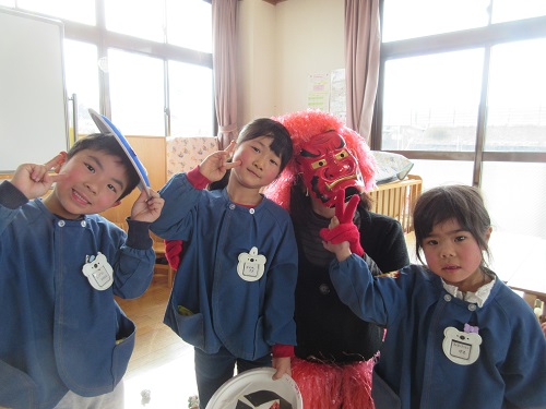 鬼退治をした子ども達、今年も健康に過ごせそうです。