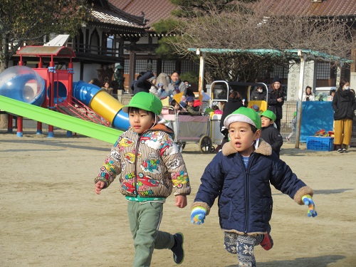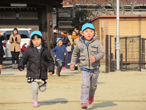 黄組(2歳児)、桃組(3歳児)、藤組(4歳児)、白組(5歳児)が