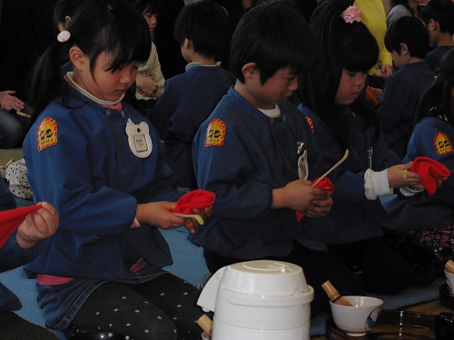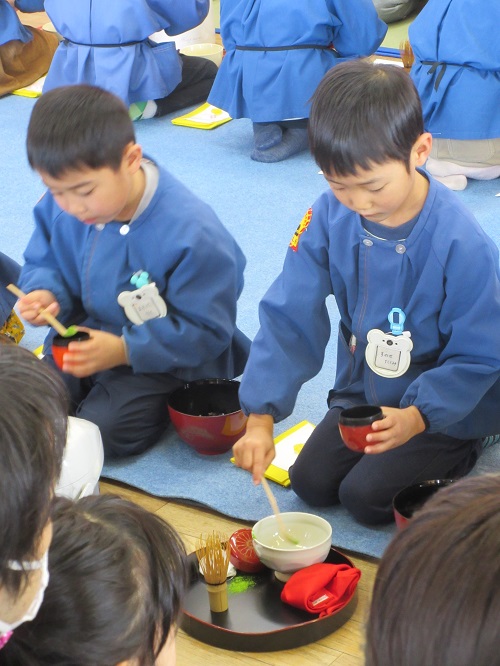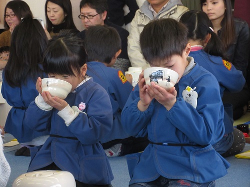 お家の方に自分で点てたお茶を飲んでいただき、お互いに笑顔が溢れていました。