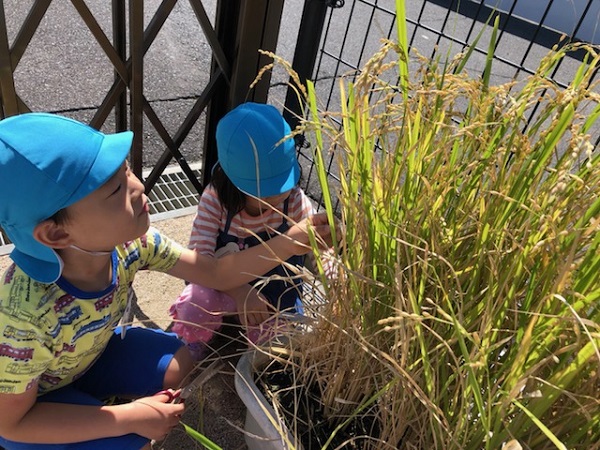 収穫したお米でおむすびパーティーをします。
