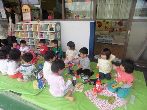 お弁当はテラスで頂きました(き組 2歳児クラス)