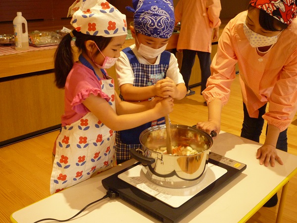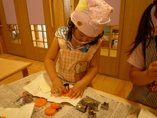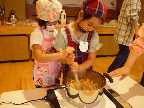 炒めるのは年長さんです。