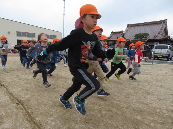 園庭をスタートして園の周辺を走ります。