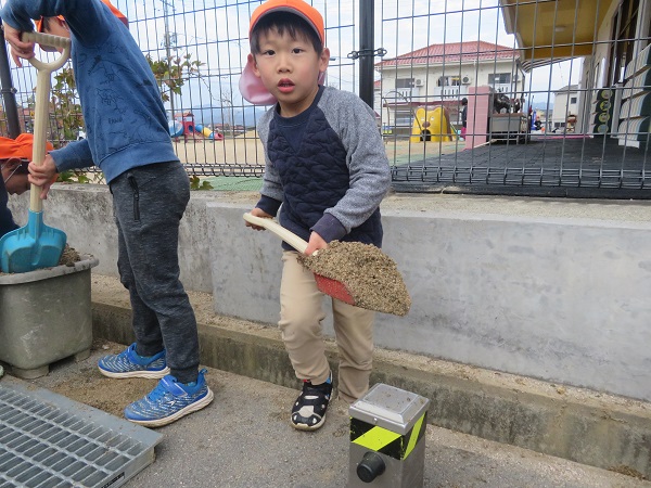 砂場に土を運んでいます。