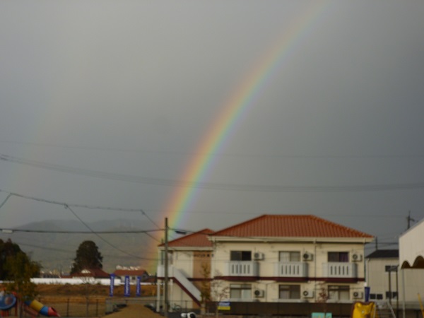 雨上がりの空に虹が出ました。