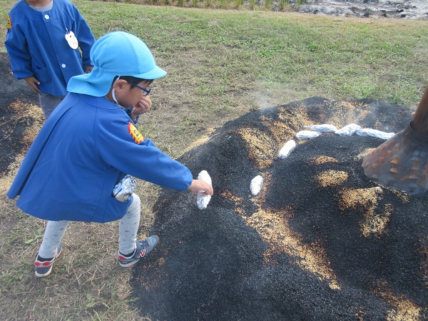 近くの田んぼで焼き芋。熱い!!臭い!!