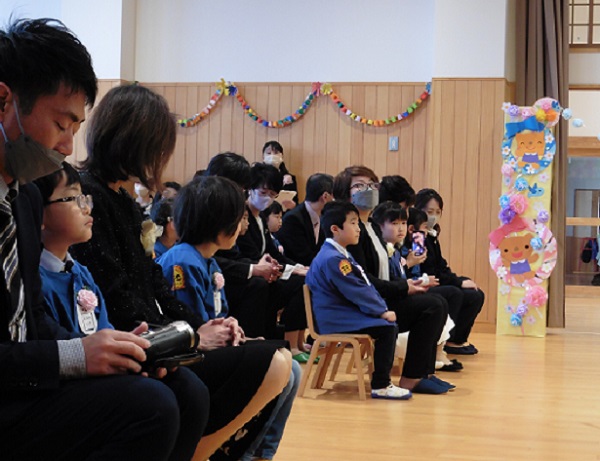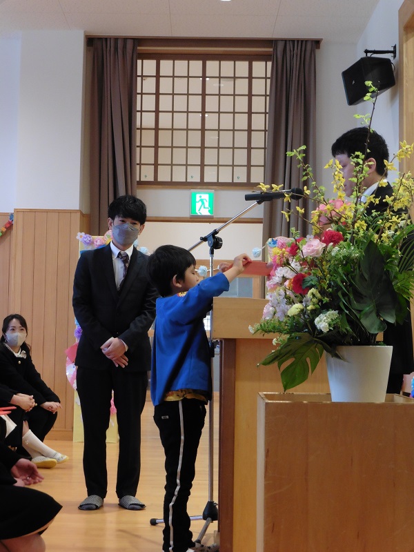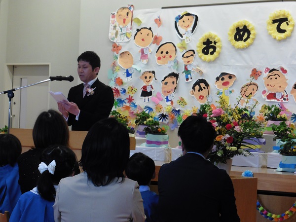 卒園証書を受け取った後、保護者の方へ感謝の気持ちを伝えます。