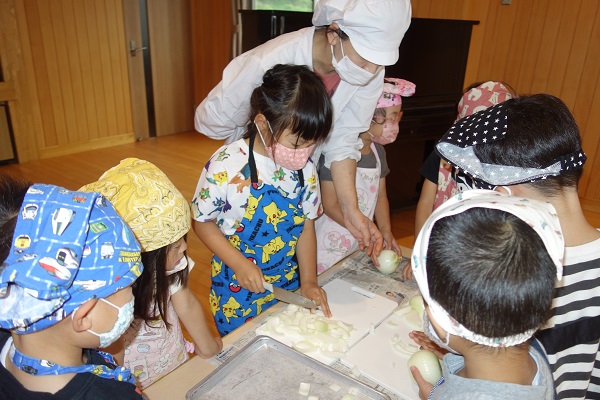 今日はカレーパーティー!!しろ組(年長)さん達がクッキングをしました。