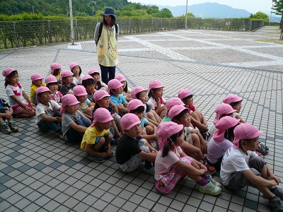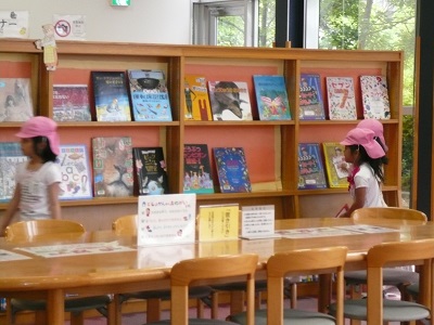 しろ組(年長)さんが歩いて図書館へ行きました。